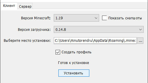 First you need to run the Fabric Loader Installer downloaded from the Forkbench Server Telegram Channel and click Install. Make sure the settings are the same as shown here